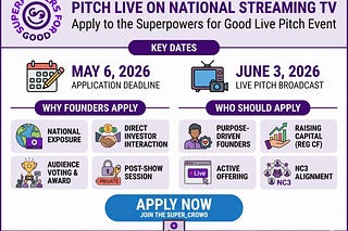 Purpose-driven founders raising capital through Reg CF are invited to pitch live on national streaming television on June 3—applications close May 6.
