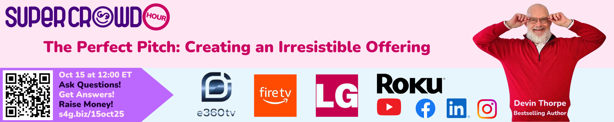 SuperCrowdHour, October 15, 2025, at 12:00 PM Eastern. Devin Thorpe, CEO and Founder of The Super Crowd, Inc., will lead a session on “The Perfect Pitch: Creating an Irresistible Offering.” As a former investment banker and author, Devin will guide entrepreneurs through the process of crafting a regulated investment crowdfunding offering that aligns with investor expectations and captures attention. In this session, he’ll share what makes a pitch compelling, how to structure terms that attract capital, and practical strategies for presenting your company’s story in a way that resonates with investors. Whether you’re launching your first community raise or refining a current campaign, this SuperCrowdHour will equip you with the tools to stand out and secure investor support. Don’t miss this opportunity to learn how to transform your vision into a pitch investors can’t resist.