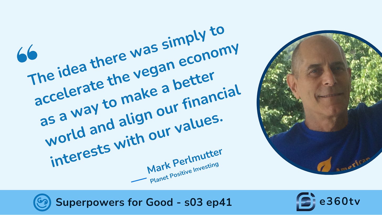 Planet Positive Investing is inspiring a new wave of sustainable, values-driven investments. Mark Perlmutter, Founder and CEO of Vegan Investing Club—soon to be rebranded as Planet Positive Investing—joined me in this episode to share how he’s aligning financial investments with environmental and social impact. Starting with a niche focus on supporting vegan businesses, Mark is now broadening his mission to attract a larger audience of sustainable investors, empowering people to invest in opportunities that reflect their values.